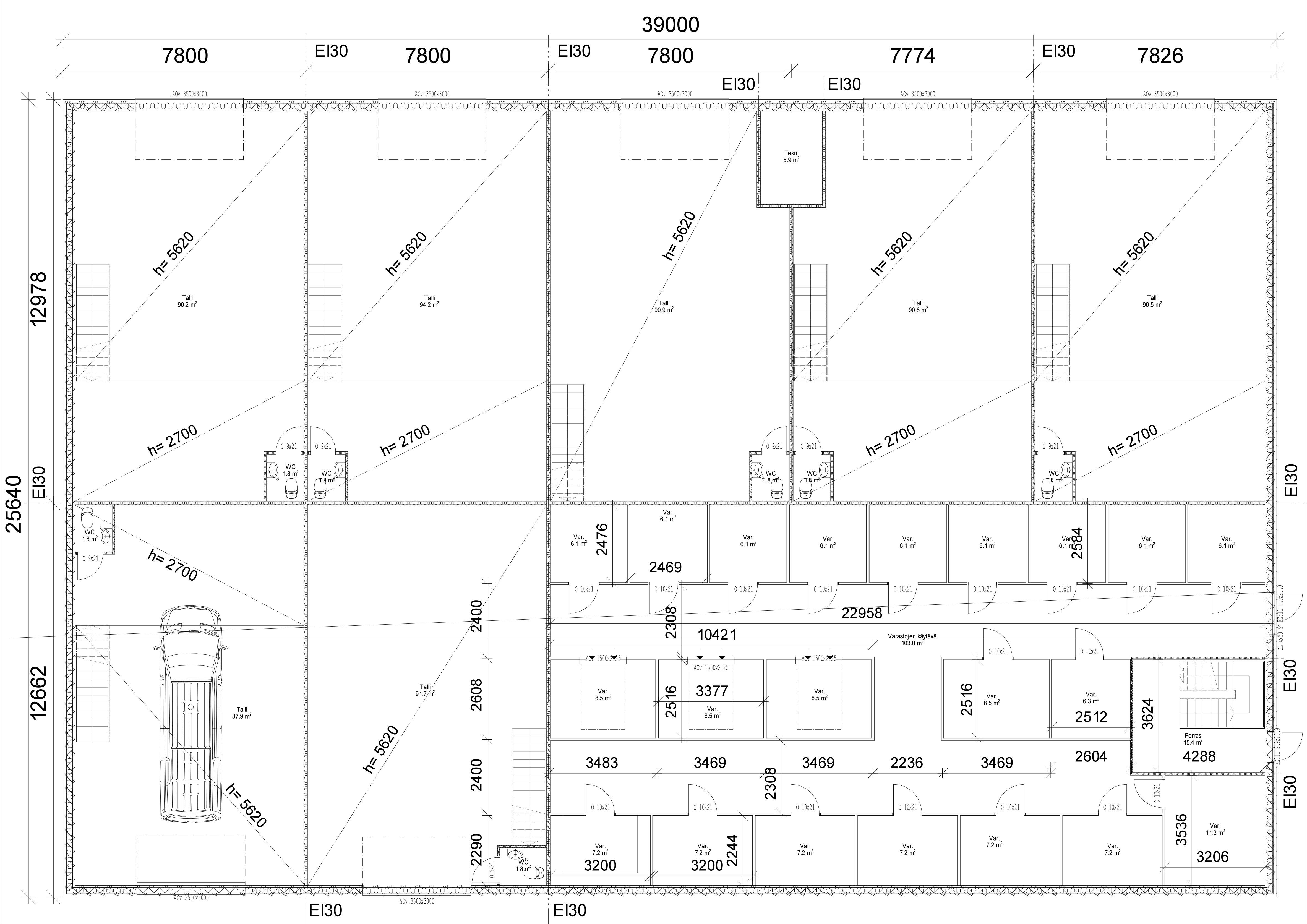 Näissä suunnitelmissa tilaa on 1500 m2. Tilan voi myös ostaa omaksi.